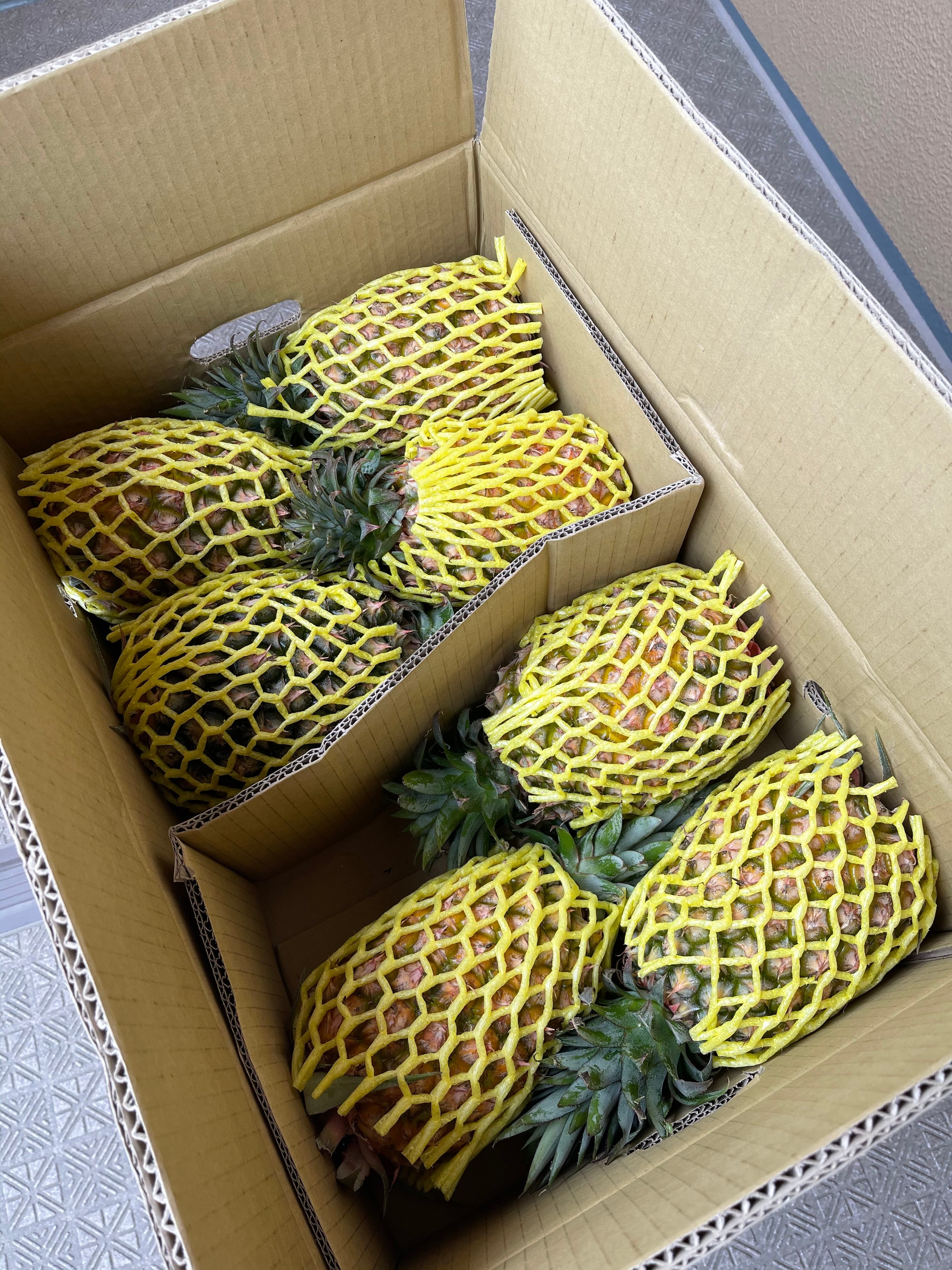 お届けするのは、10kgの箱に5〜10粒が入った贅沢なセット。どうぞ、新鮮な台湾産パイナップルをお楽しみください!
